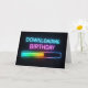 A bright neon computer loading bar in rainbow colors on a black background, indicating a download for a birthday celebration