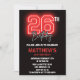 Red Neon Black 26e anniversaire invitation Hommes anniversaire