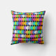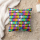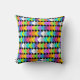 This throw pillow has a geometric design of neon diamonds overlapping each other on a field of black.