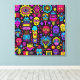Neon Doodle Faces – Vibrant Street Art Pattern Canvas Print