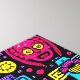 A bold and colourful neon doodle artwork featuring a mix of tribal masks, abstract faces, and futuristic icons in a striking pop-art style. The vibrant palette of pink, yellow, blue, and purple creates an eye-catching street art vibe that’s perfect for modern interiors, statement apparel, and urban wall art.