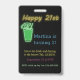 Neon Drinks And Dancing 21st Birthday Party Invita Badge