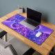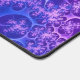 Energize your desktop with this dynamic neon purple fractal desk mat. This design features a mesmerizing explosion of electric violet and deep cobalt blue, mimicking the look of bioluminescent bubbles or a swirling cosmic nebula. The intricate, web-like patterns create a sense of movement and depth, making it a perfect statement piece for any modern office or gaming setup.
