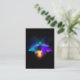 Antique, mechanical firefly with light bulb and thin wings glows orange, purple, turquoise on black background. Steampunk style.