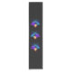 Antique, mechanical firefly with light bulb and thin wings glows orange, purple, turquoise on black background. Steampunk style.