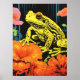 This dazzling poster showcases a vibrant frog surrounded by bold, glowing floral elements. The contrast of neon yellow and orange hues against a deep black background creates an electrifying aesthetic, blending the grace of nature with a modern, psychedelic vibe. A perfect piece for wildlife enthusiasts and art lovers alike.