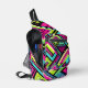 Brighten up your day with the Neon Geometric Retro Vibes Backpack. This design combines bold neon pink, electric green, cyan, and black in a series of dynamic geometric shapes. The sharp lines, triangles, and zigzag details give this backpack a playful, energetic feel reminiscent of retro 80s street art. Perfect for those who love bold, colourful designs, this backpack is a vibrant statement piece for everyday use or travel.