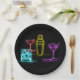 Neon Glow Lights Colourful Cocktails 21st Birthday Paper Plate