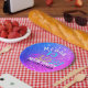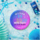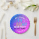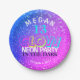 Trendy neon glow in the dark pink blue neo vibrant glam glitter colourful teen girl birthday party personalized paper plates.