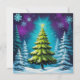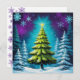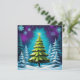Neon Glow Pine Tree & Star in Dreamy Snowy Forest Holiday Card