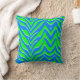 Neon Green and Blue Zebra Stripes Throw Pillow