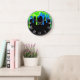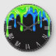 Neon Green & Blue Slime Drip Black Gamer Graffiti Large Clock