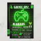 Éblouissez vos invités avec cette invitation à la fête d'anniversaire NEON GREEN GAMER avec des éléments néons comme un joystick, et le style de police et de contrôleur décoratif. Ajoutez la photo de votre enfant pour l'arrière - plan. Ajoutez simplement les détails de votre événement sur ce modèle facile à utiliser pour en faire une invitation unique.