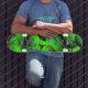 Neon green planets - pattern in 3D optics Skateboard