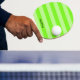Personalized neon green stripe pattern ping pong paddle for table tennis. Modern sports game gift idea for tabletennis girls. Cute girly striped design personalized with name. Custom background colour. Fun game and sports accesories.