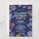 Neon Halloween 11th Birthday Party Invitation for kids turning nine years old at Halloween time.
