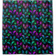 Neon Halloween Bats, Cats, Moons and Stars Shower Curtain