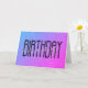 Contemporary Happy Birthday text on purple and pink polka dot pattern.