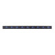 Glowing, purple infinity symbol with flying, luminous, blue hummingbird on black background. Neon.