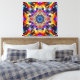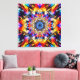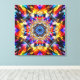 A dazzling kaleidoscope design radiates vibrant colours and intricate geometric patterns drawing the eye toward a captivating central point