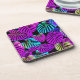 Neon Leaf Harmony Vibrant Pattern Coaster