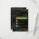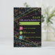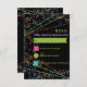 Neon lights and laser beams decorates this fun response card that coordinates with our glow in the dark / black light themed party invitation. With text of bright lime green and neon purple, and colourful confetti shapes, each line can be customized for your event.