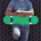 Neon Lime Green and Teal Blue Stripe Skateboard