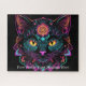 This mesmerizing jigsaw puzzle features a majestic cat illuminated with glowing neon mandala patterns. The intricate, symmetrical designs flow across its fur in vibrant hues of electric colors, a fiery orange, and magenta . The cat's piercing turquoise eyes seem to glow with mystic energy, drawing you into its enigmatic gaze. Set against a deep black background, the vivid lines and radiant details create a dazzling contrast, making each puzzle piece a work of art. A stunning blend of fantasy and elegance, perfect for those who love cats, color, and cosmic mystery.
