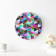 Neon Memphis Style Triangles Large Clock