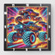 Neon Monster Trucks on a Flaming Action-Packed Square Wall Clock