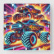 Neon Monster Trucks on a Flaming Action-Packed Square Wall Clock