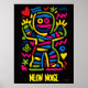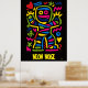 Bright neon mummy poster wrapped in fluorescent stripes of pink, blue, yellow, and green. A pop art design from the Neon Noise Collection, perfect for Halloween parties, kids’ rooms, or vibrant modern wall decor.