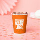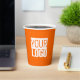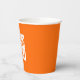 Solid colour Paper Cups in neon orange (ff6600) solid colour background and a cover logo . Personalize it now . Modern and trendy design by Alma Wad for company parties .