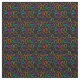This fabric has a geometric design of groups of three ovals in neon colours scattered about on a field of black.