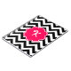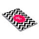 A customizable neon pink monogram frame is on a background of a bold black and white chevron pattern.