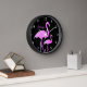 Neon pink flamingo wall clock with custom name
