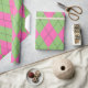 Neon Pink Green Argyle Diamond Pattern Wrapping Paper