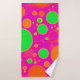 Neon Pink & Green Retro Circle Design Bath Towel Set