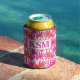 This customizable can cooler features a pattern of neon pink and orange palm trees.