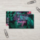 Add your name and contact info to this modern skincare/beautician business card, featuring tropical dark green foliage. The words "Skin" and "lounge" are in purple and pink neon typography with your name underneath it, and your contact details on the back of the card. There's a QR code as well, where you can add your social media URL. Contact the designer if you would like a different colour on the neon text.
