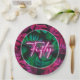 Celebrate with these trendy tropical neon sign inspired 50th birthday paper plates.