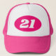 Cool neon pink trucker hat women's 21st Birthday party! Add your own custom age number. ie 22th 23rd 24th 25th 26th 27th 28th 29th 30th etc. Retro baseball cap with oval logo with year or age number. Fun accessory for adult men and women turning twenty one. Fun headwear for surprise parties. Great for friend, girlfriend, sister, cousin, daughter, team mate, colleague, co worker etc. Available in all colours.