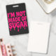 Stand tall. Speak bold. This vertical badge features the striking quote “I’M NOT MADE OF SUGAR” in neon pink drip lettering over a pure black background. Designed for maximum impact, it’s the perfect choice for those who don’t back down — whether you're heading up a panel, running the show backstage, or simply refusing to be underestimated at your next event.