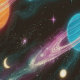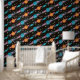 Embark on an interstellar adventure with this vibrant space-themed wallpaper. Neon planets, adorned with swirling rings, and crescent moons illuminate a dark, starry expanse, creating a captivating and futuristic scene. This peel and stick wallpaper is easy to apply and remove, making it perfect for adding a touch of cosmic wonder to bedrooms, game rooms, or any space that needs a touch of stellar style.
