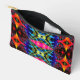 This brightly-coloured accessory bag features a complex, kaleidoscopic design that resembles psychedelic neon lighting.