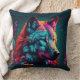 Unleash your wild side with the Neon/Psychedelic Art Wolf Throw Pillow from Raeann Blake Studios.