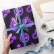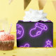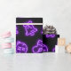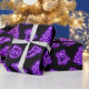 A seamless pattern of Neon Purple Christmas elements, including Christmas Trees, Bells, Stockings and Ornaments on a Black background