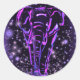 Neon Purple Pink Elephant Walking At Starry Night Classic Round Sticker
