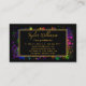 This elegant and glamourous business card features neon rainbow brush strokes with paint splatters on a black background. The text combines handwritten script and modern sans serif fonts for a classy and sophisticated look. This is perfect for make up artists, beauticians, spas, fashion stylists, interior design and more.