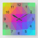 Pretty neon abstract triangles cover this wonderful square wall clock.